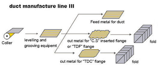 3、可完成TDC剪切角并和插條法蘭折彎,可與聯(lián)合合縫機和插條法蘭配合使用而完成完整風管。